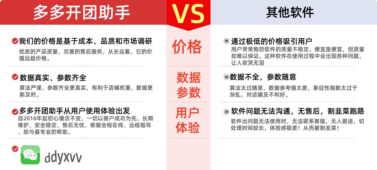 拼多多出評(píng)神器出評(píng)工具軟件多多開團(tuán)助手sd軟件動(dòng)銷軟件一鍵全自動(dòng)操作教程多多開團(tuán)助手是一個(gè)為個(gè)人電商運(yùn)營者創(chuàng)建的電商工具,于2017年6月10日成立并上線運(yùn)行,它的主要功能是作為一個(gè)補(bǔ)單平臺(tái)。專注于為電商商家提供試用單服務(wù),并且可以靈活地應(yīng)用于拼多多電商平臺(tái)。自提供以來 它穩(wěn)定的服務(wù)了 上千+ 微、小、中等商家、滿足店鋪提高支付轉(zhuǎn)化率,提高坑產(chǎn)、加強(qiáng)商品熱度;提供了一個(gè)方便、快捷、安全、穩(wěn)定、可靠的自動(dòng)補(bǔ)單方案; 快速高效的幫助了微小、中型商家將想法快速轉(zhuǎn)化為運(yùn)營收益。讓店主解放雙手、自動(dòng)化的完成了開團(tuán)補(bǔ)單操作。軟件作者微信ddyxvV